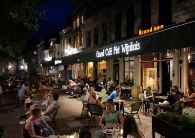 Aan een van de mooiste pleinen van Zwolle is deze prachtige klassieke Franse wijnbar gelegen. Met een overdekt terras van 120m2 daarmee het grootste overdekt en verwarmd terras van Zwolle. Binnen en op ons terras kunt u genieten van lekkere gerechtjes en bittergarnituren of voor een mooie koffie, speciaal bier of een keuze uit onze grote trots de uitgebreide wijnkaart. Voel u op uw plek en geliefd in Zwolle, bij Grand café wijnbar het Wijnhuis.”